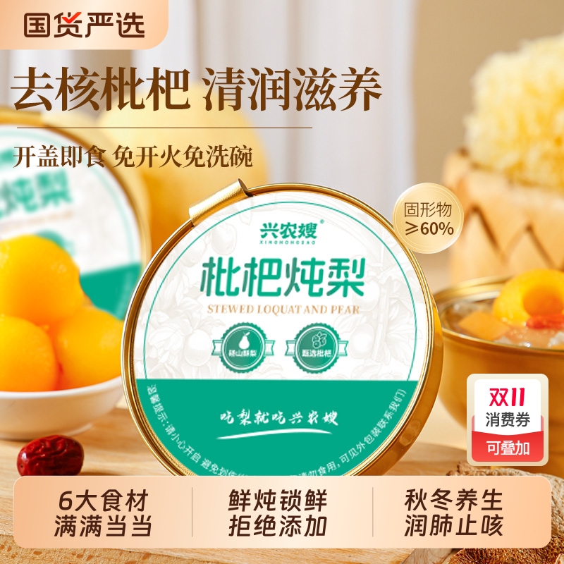 兴农嫂枇杷炖梨小碗梨即食罐头烤梨鲜炖雪梨银耳羹润肺止咳