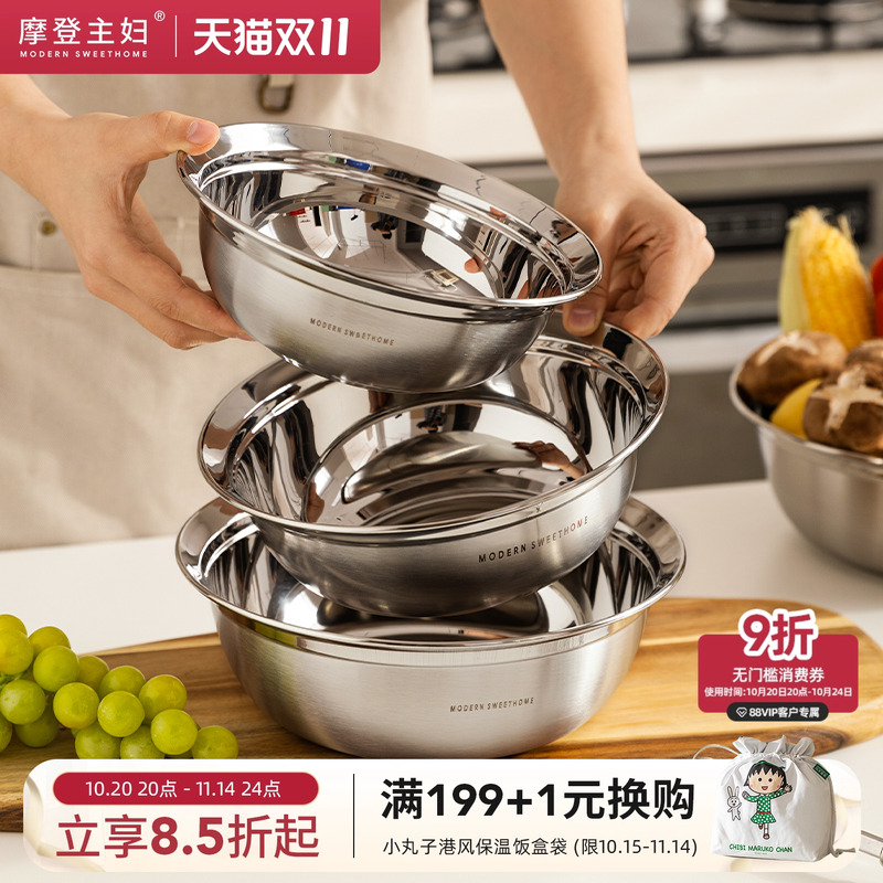 摩登主妇家用食品级不锈钢汤盆
