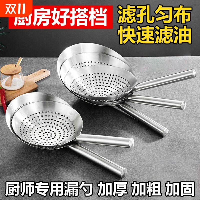 特厚不锈钢漏勺油炸家用厨师油鼓漏厨房过滤捞勺大号笊篱商用大勺