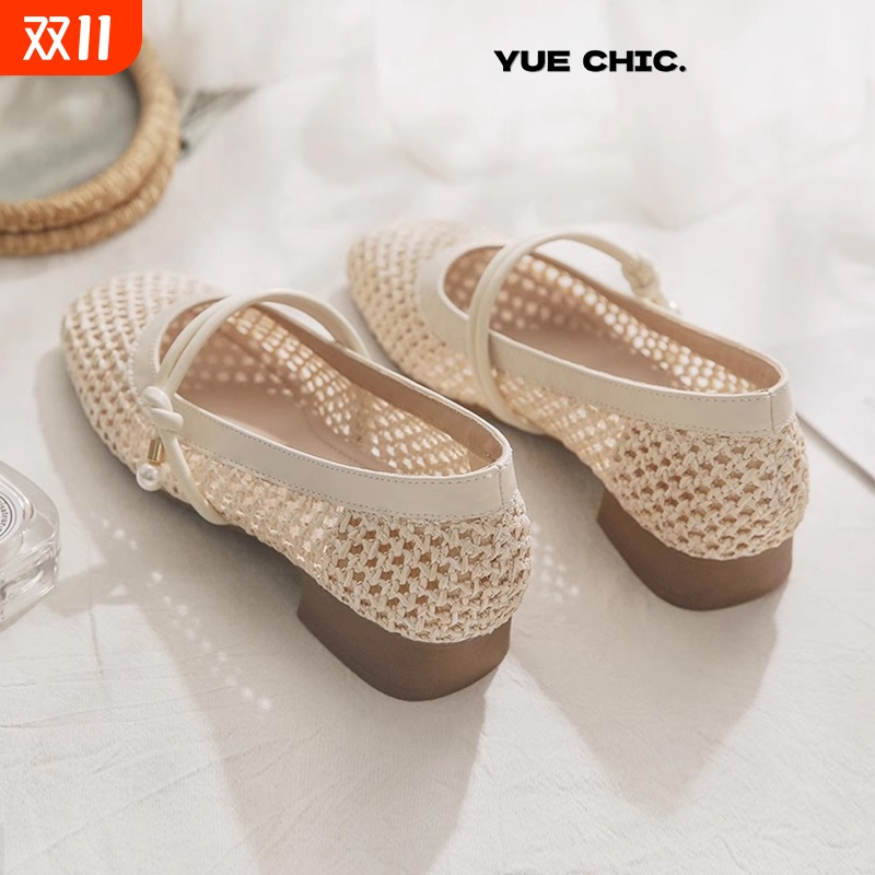 法式一脚蹬女鞋夏天配裙子的鞋百搭编织镂空透气小单鞋女2025新款
