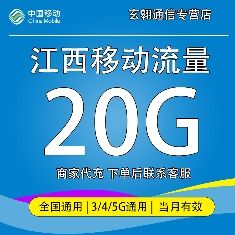 江西移动流量充值20G中国移动流量加油包全国通用流量当月有效