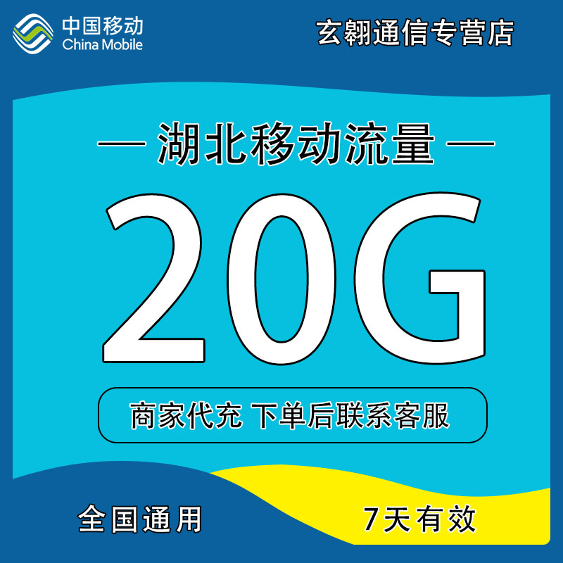 湖北移动流量充值20G中国移动流量加油包全国通用流量7天有效