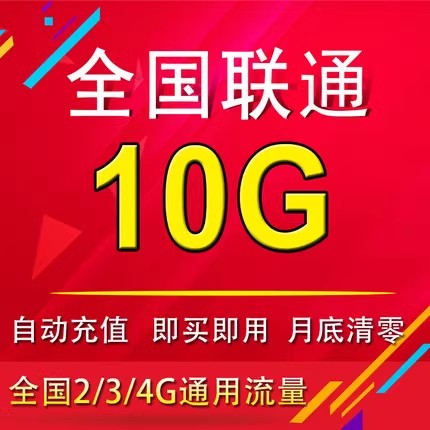 上海联通流量充值10GB 全国通用 手机流量包 当月有效