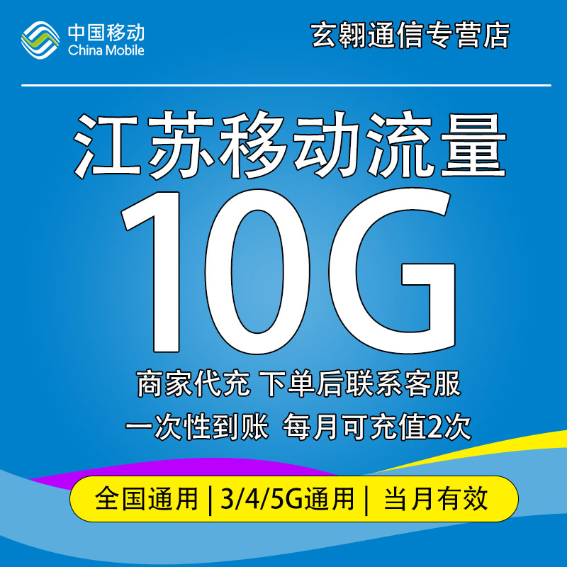 江苏移动流量充值10G中国移动流量加油包全国通用流量当月有效
