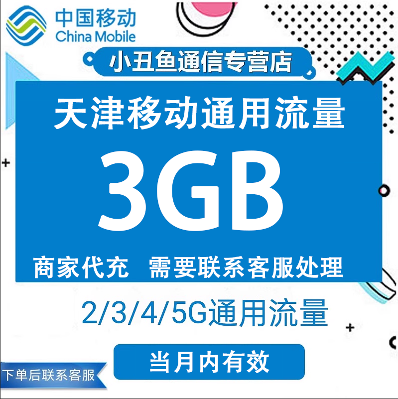 天津移动流量充值3GB流量包叠加包2/3/4/5G全国通用流量当