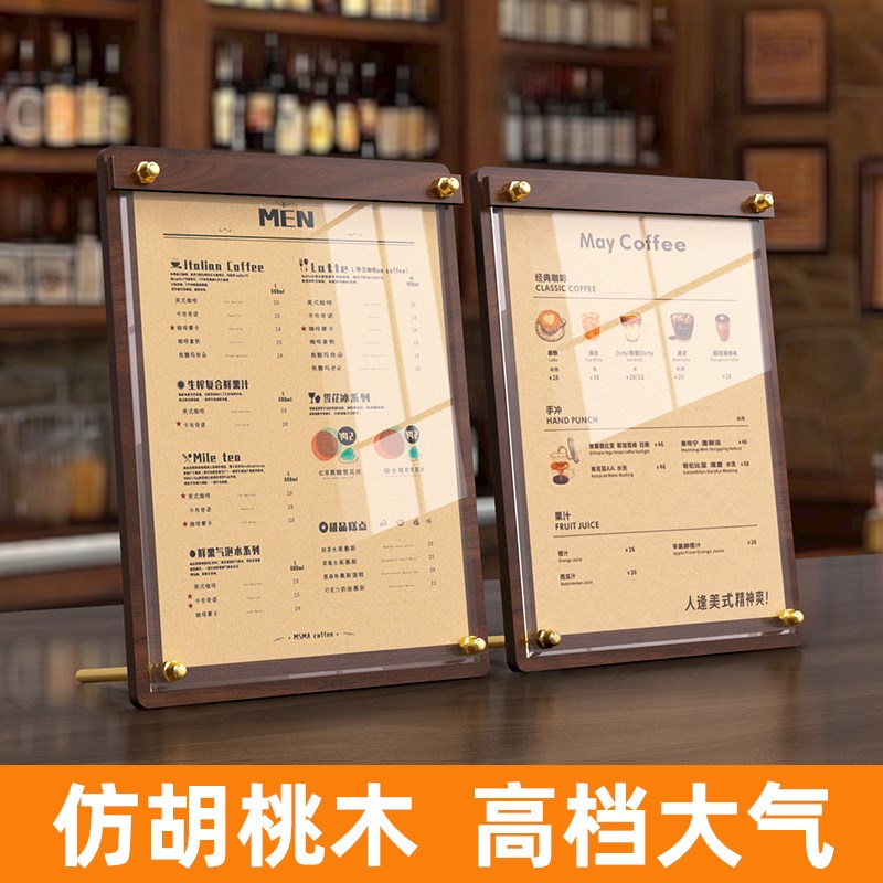 菜单展示牌木质桌牌台卡亚克力立牌展示架a4价目表定制餐厅桌面价