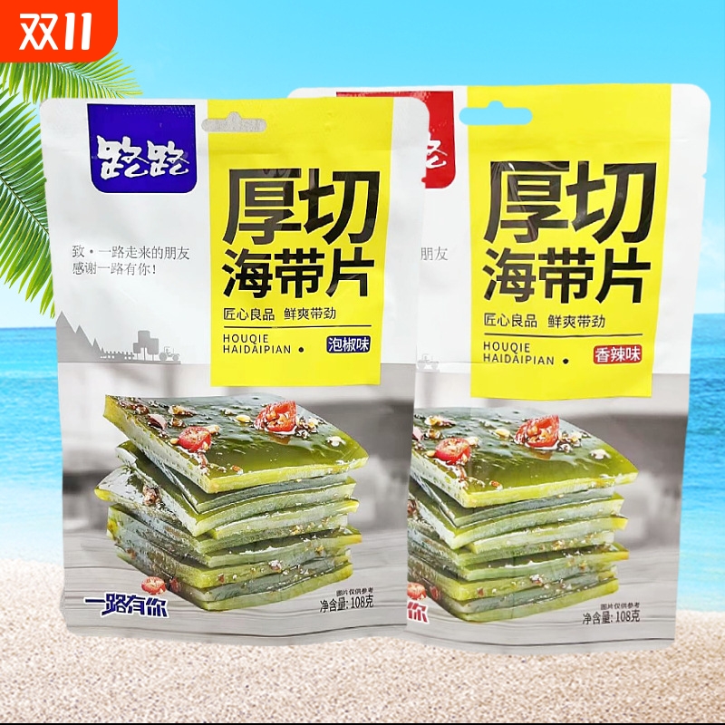路路厚切海带片香辣爽口泡椒味即食海带片108g袋装海带零食