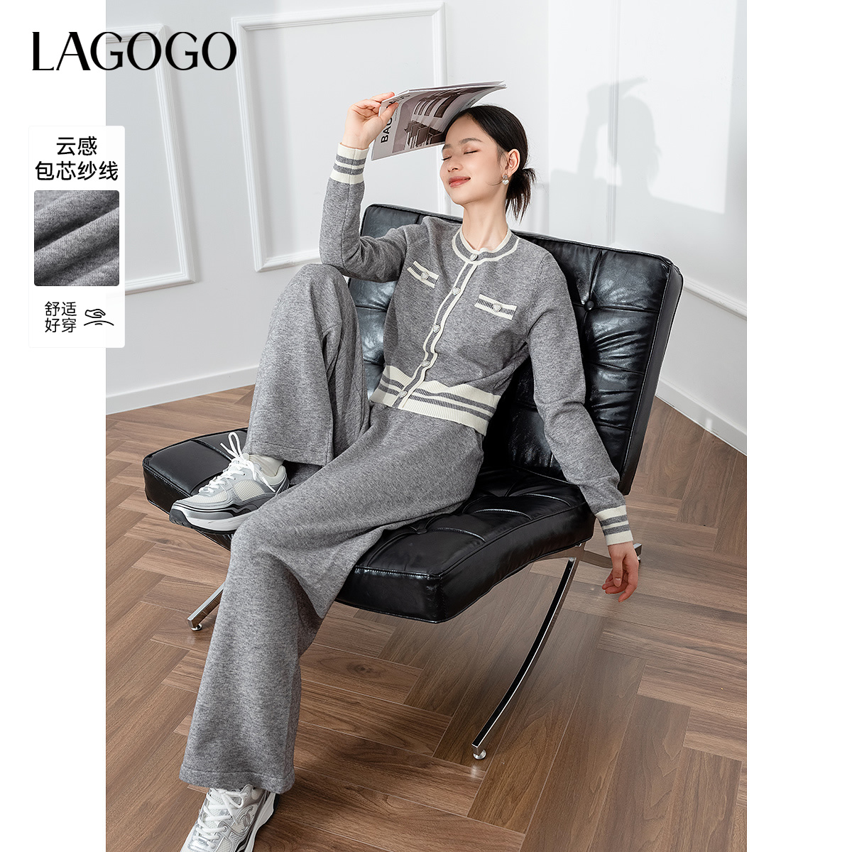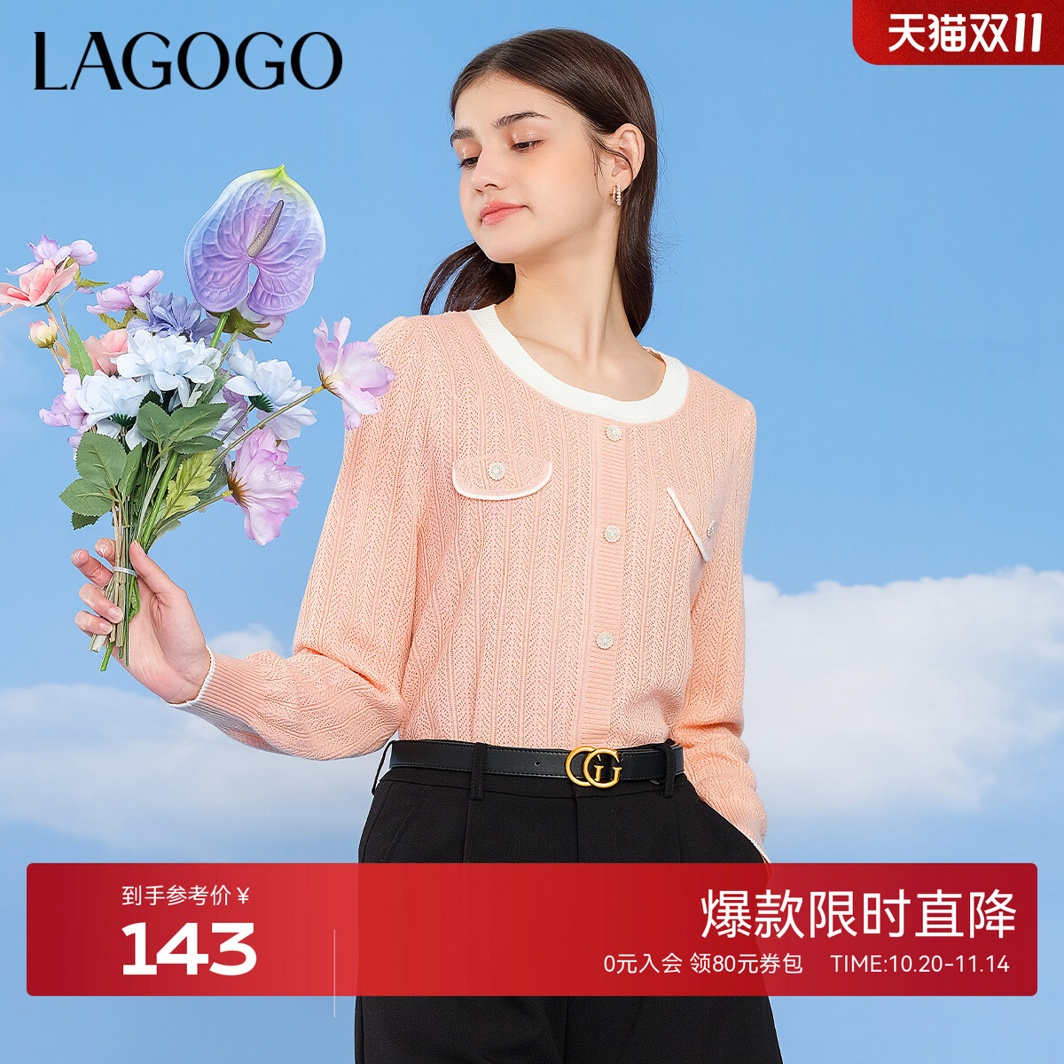 LAGOGO拉谷谷2024新款木耳边温柔通勤舒适针织衫女NCMM