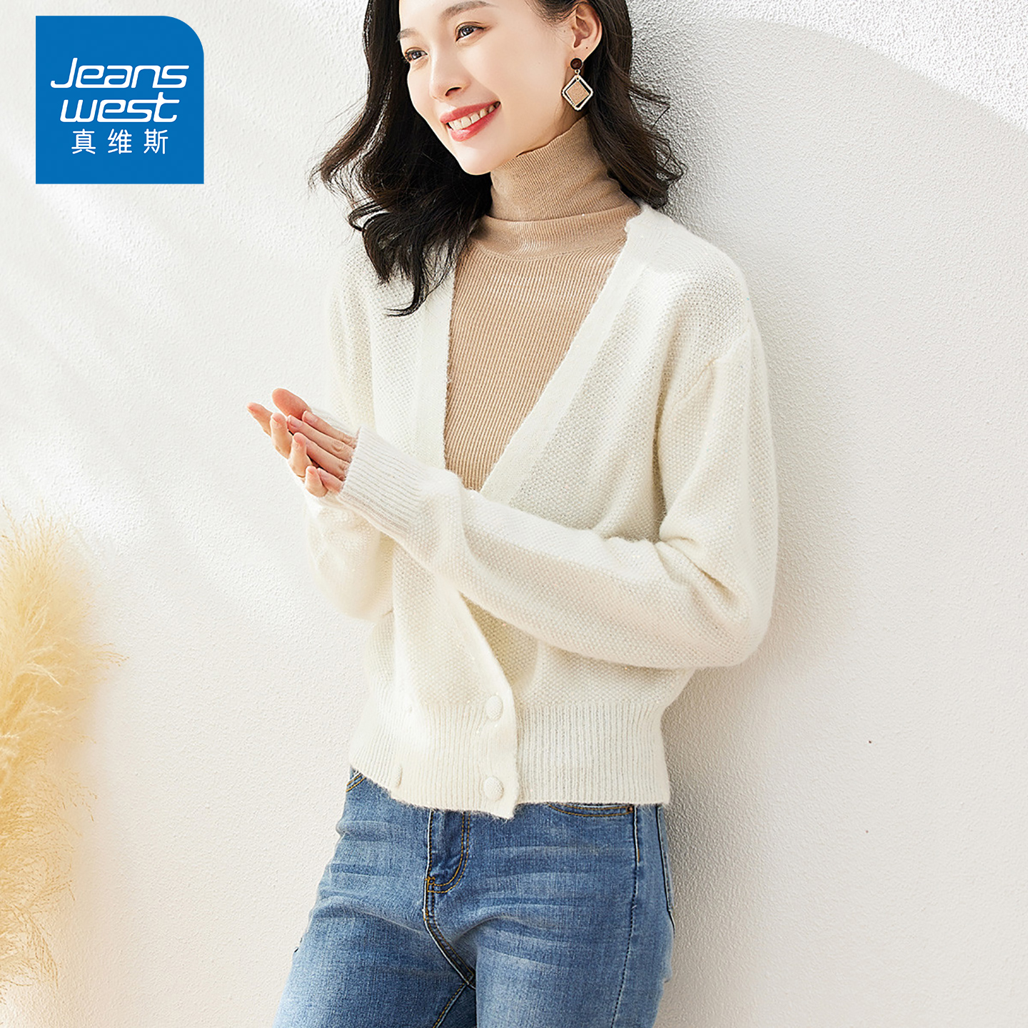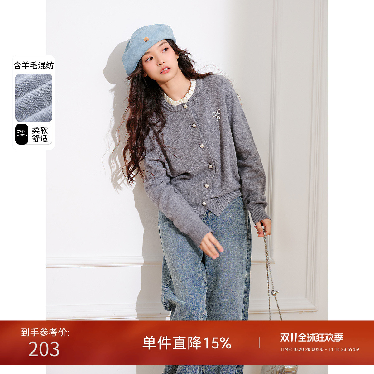 YINER音儿专选女装冬美拉德V领温柔风通勤针织开衫