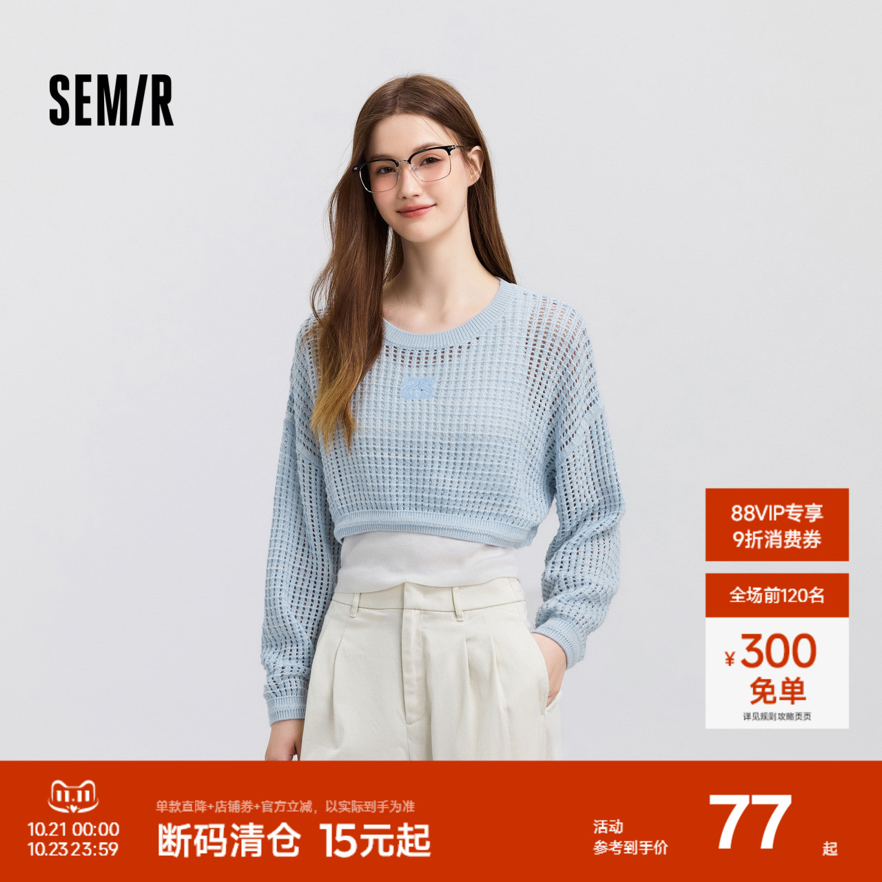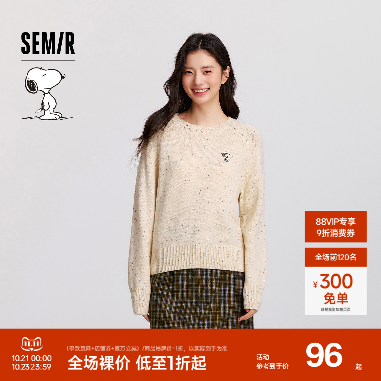 森马史努比系列毛衣女冬彩点含羊毛插肩袖绣花圆领套头衫温柔毛衫