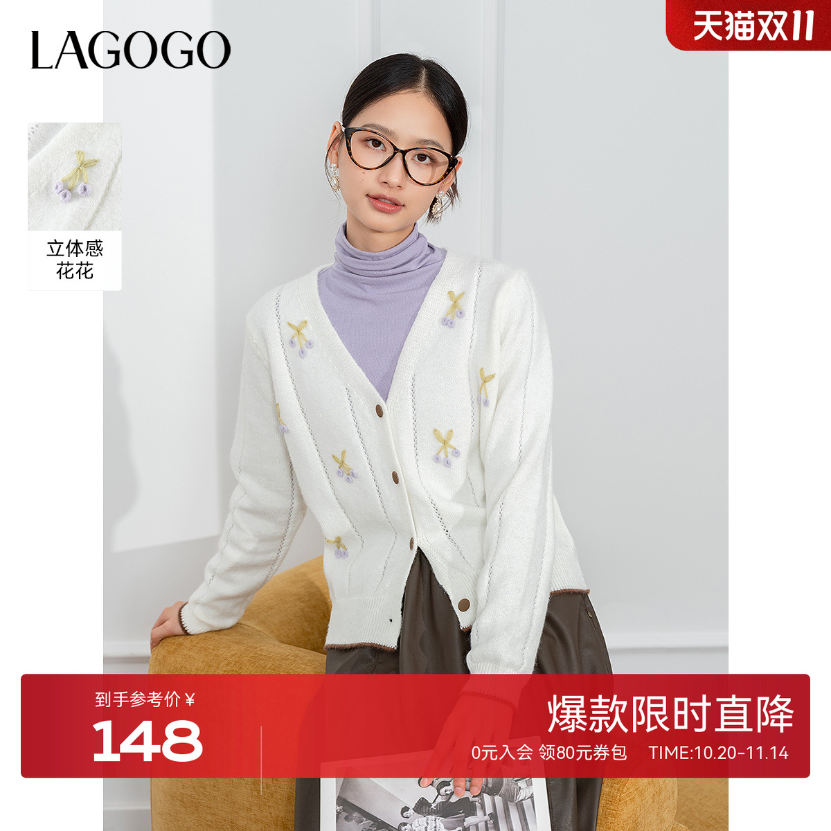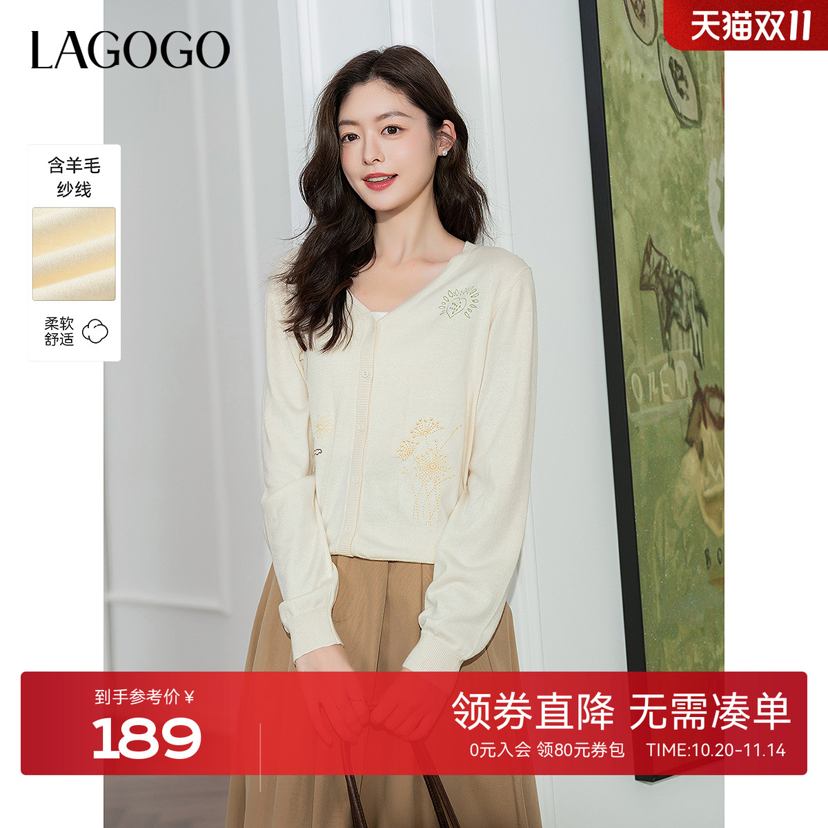 LAGOGO含羊毛趣味刺绣优雅针织衫