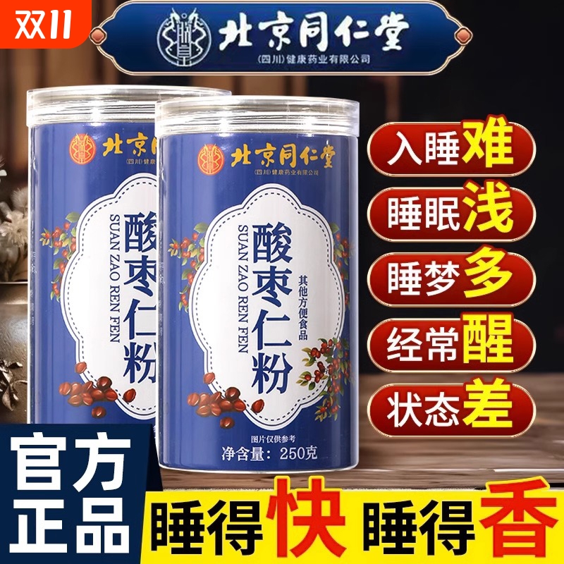 同仁堂酸枣仁材特级500g酸枣仁粉炒熟安睡助眠百合茯苓睡眠茶