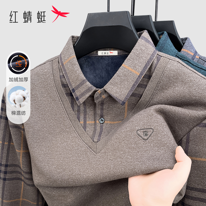 【烈儿宝贝直播间】红蜻蜓男士含棉假两件毛衣加绒加厚爸爸打底衫