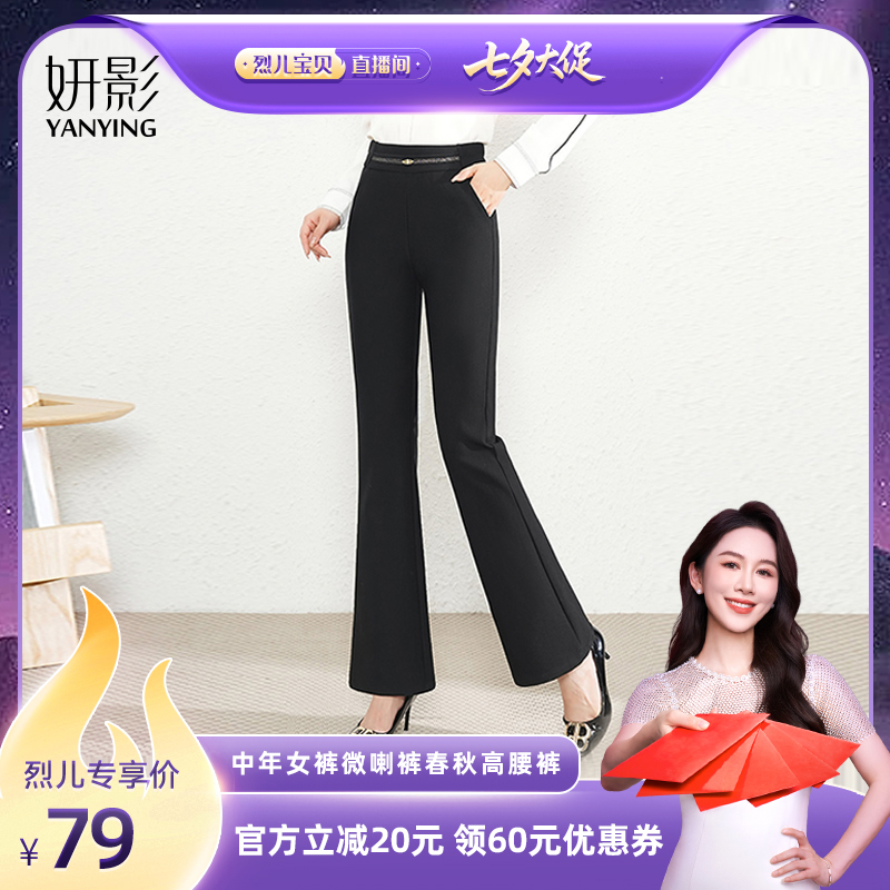 【烈儿宝贝直播间】妍影中年女裤微喇裤春秋高腰垂感裤子