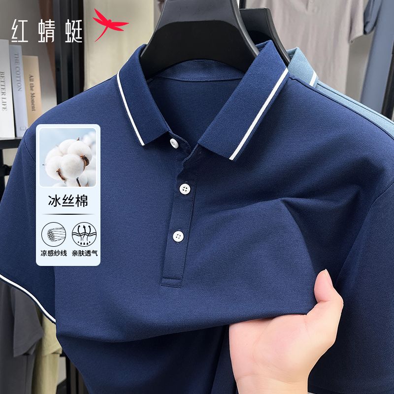 【烈儿宝贝直播间】红蜻蜓中年男士爸爸纯色翻领短袖T恤夏季新款