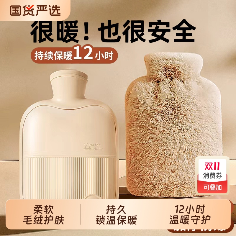 热水袋暖水袋女生暖手热敷注水暖脚神器可爱毛绒布套防爆保温冬天
