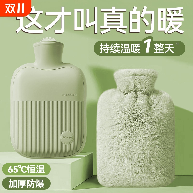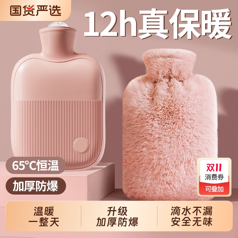 PVC注水热水袋防爆冲水暖水袋毛绒暖宫暖肚子学生可爱灌水暖手宝