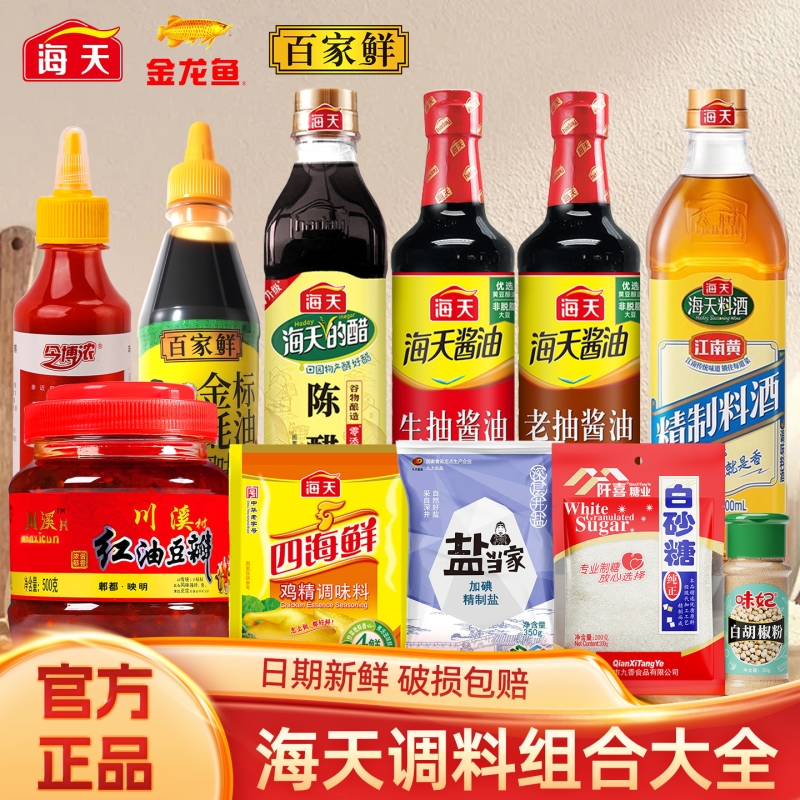 海天生抽老抽500ml酱油厨房调料酿造酱油蚝油料酒炒菜组合家用