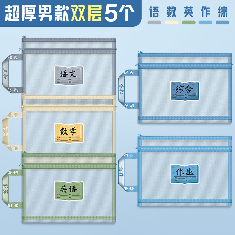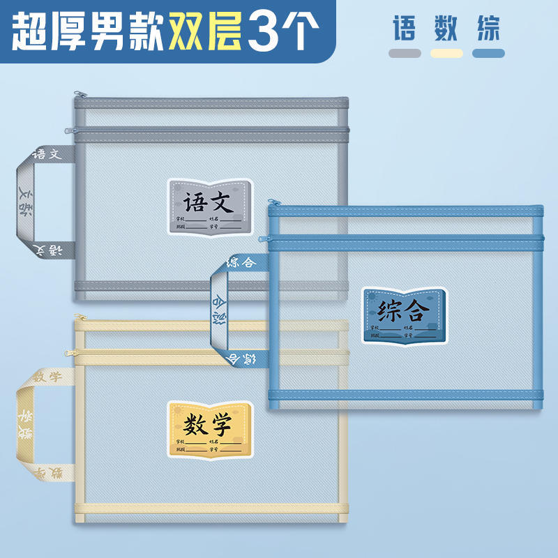 文件袋小学生学科科目分类袋书本课本试卷收纳袋拉链式拎书袋卷子资料
