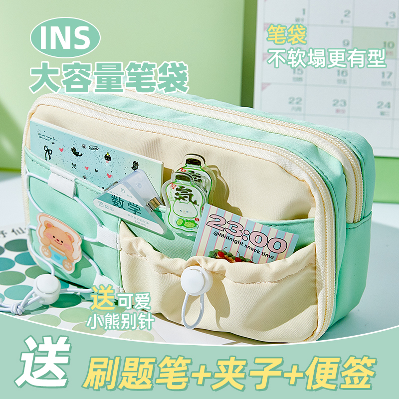 ins女生笔袋文具盒男女孩款初中高中生帆布笔袋双层大容量铅笔盒
