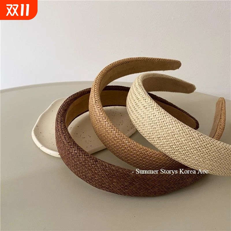 很艺术呐~编织ins夏季棉麻韩国宽边发箍百搭气质纯色头箍发