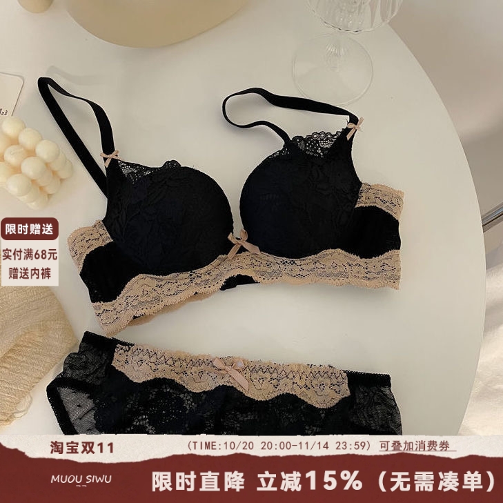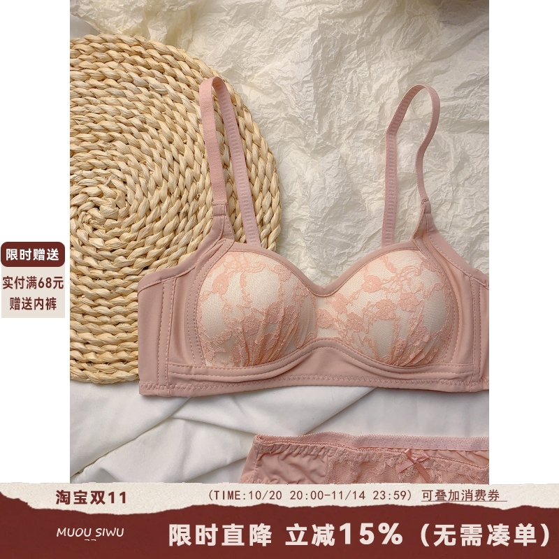 日系性感小碎花蕾丝内衣女小胸聚拢显大无钢圈纯欲风法式文胸套装