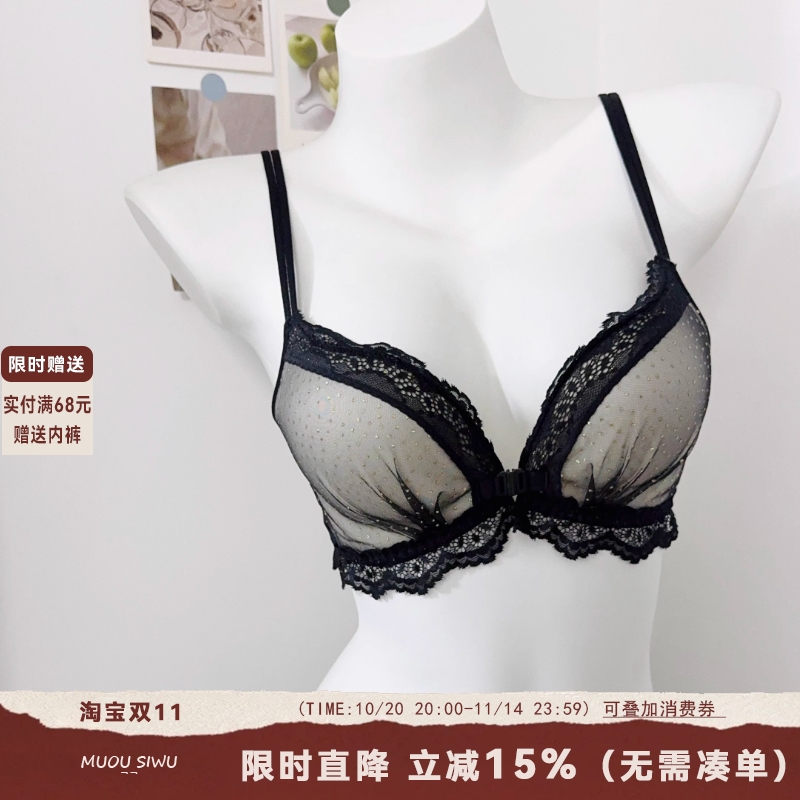 法式性感夏季超薄蕾丝内衣女聚拢小胸舒适软钢圈无肩带文胸罩套装