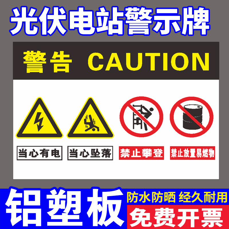 光伏电站警示牌当心有电当心坠落禁止攀登禁止放置易燃物铝塑板铝板反