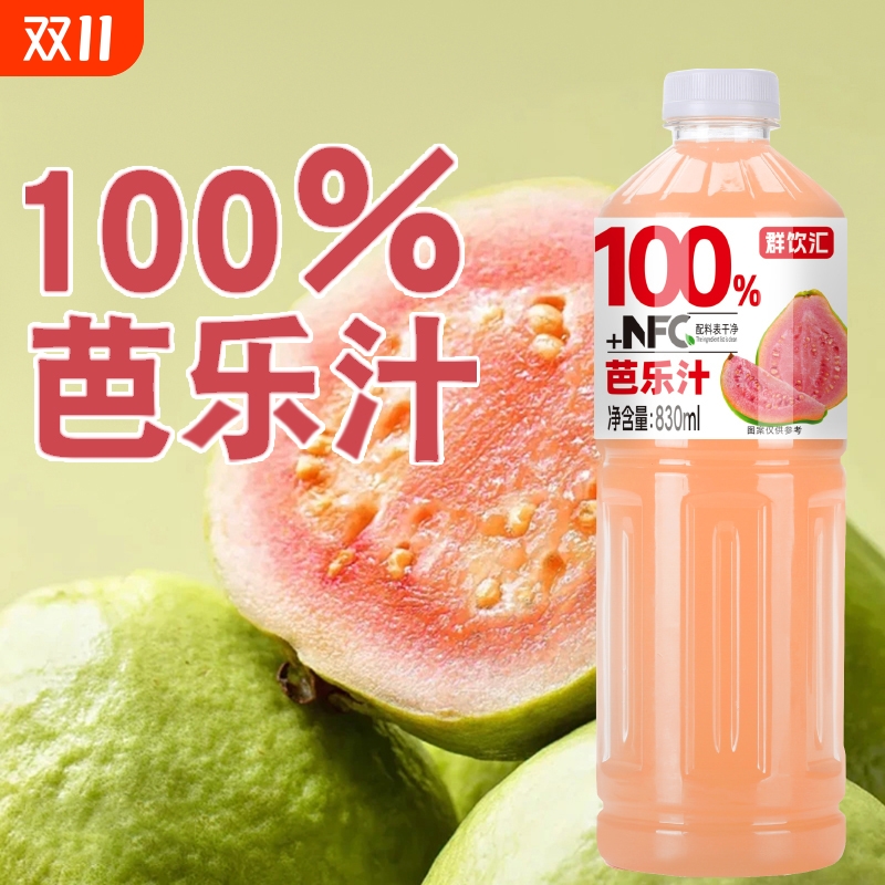 100%芭乐汁830mlx2大瓶畅饮装含nfc果汁好喝无添加果汁