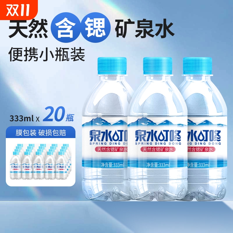 泉水叮咚天然含锶矿泉水330ml*20瓶装家庭办公商务天然饮用水