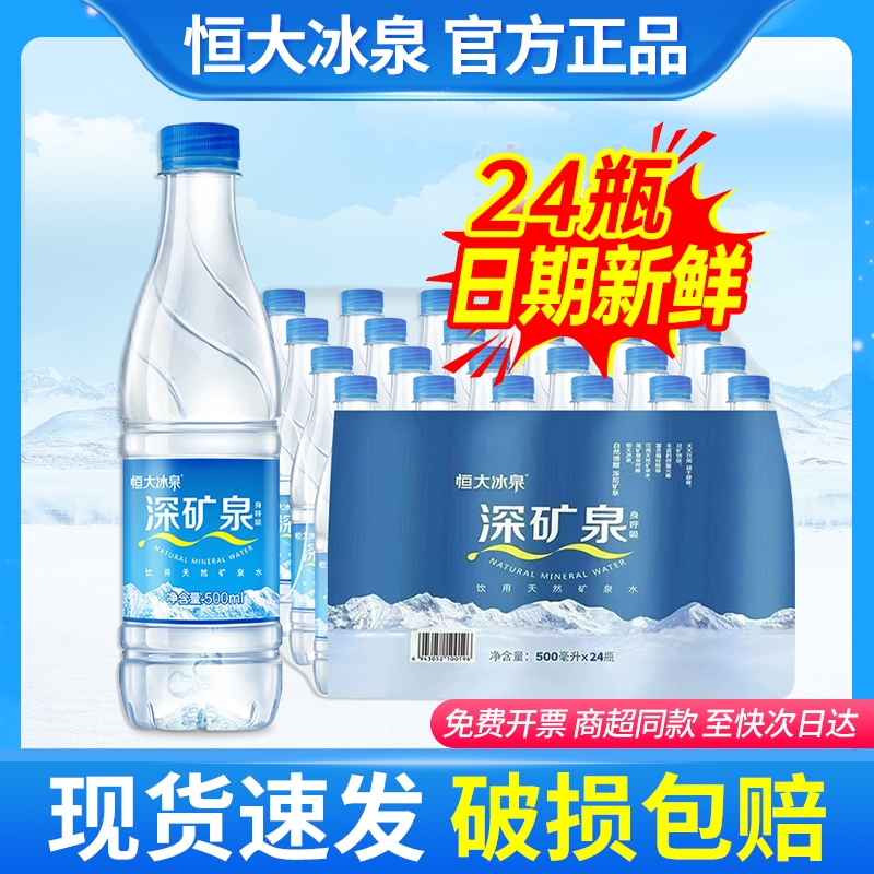 恒大冰泉天然矿泉水500ml*24瓶整箱特批价含偏硅酸会议小瓶饮