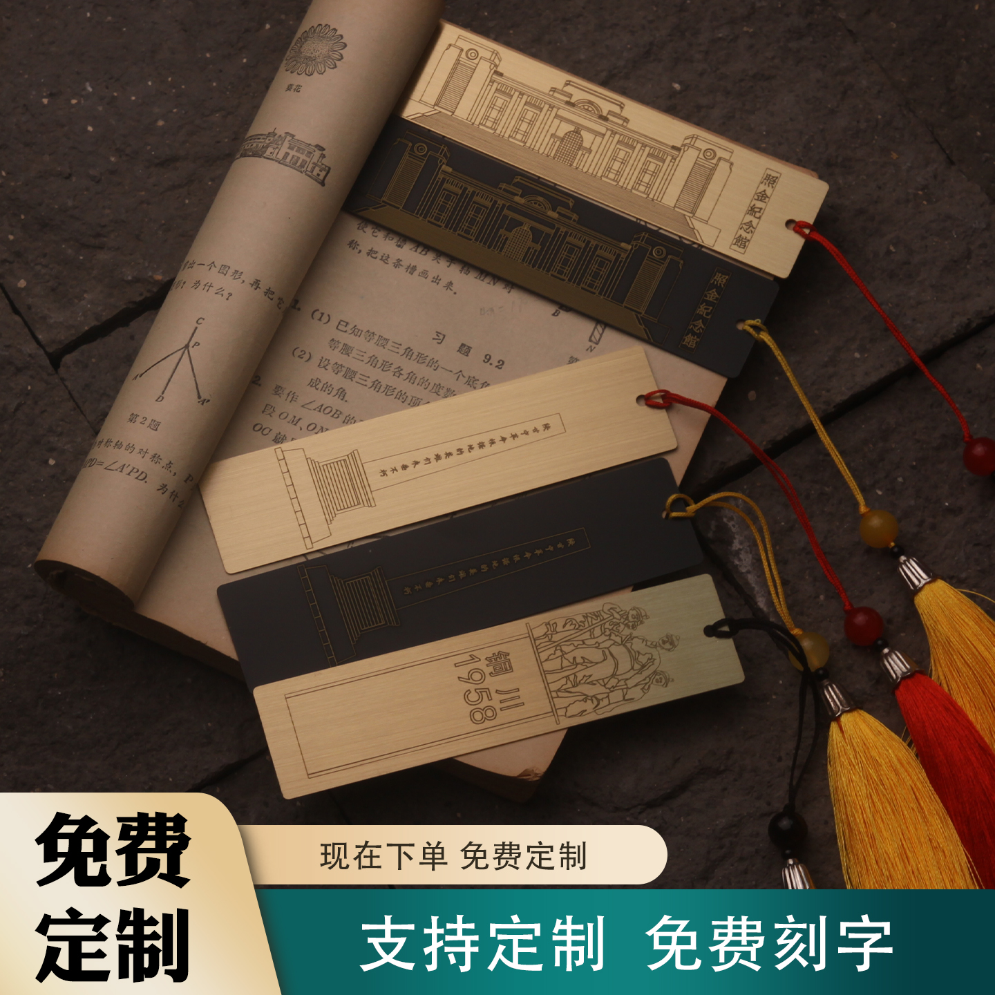 陕甘边革命根据地照金纪念馆碑黄铜书签纪念品定制刻LOGO铜川19