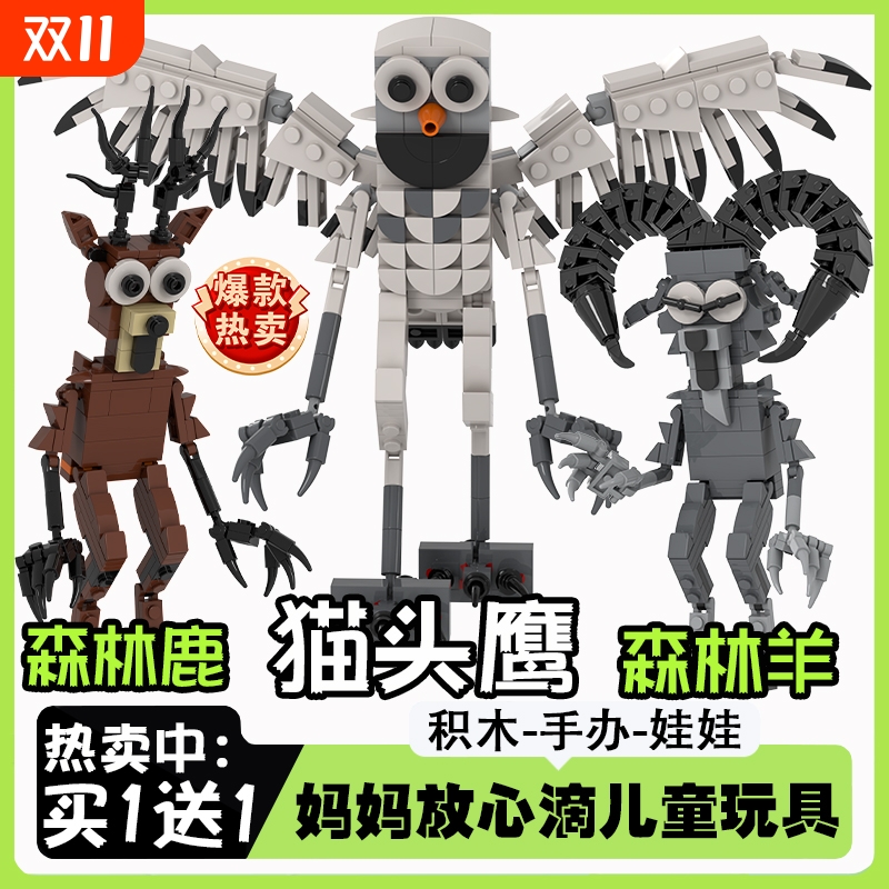 森林中的99夜积木麋鹿暗夜猫头鹰
