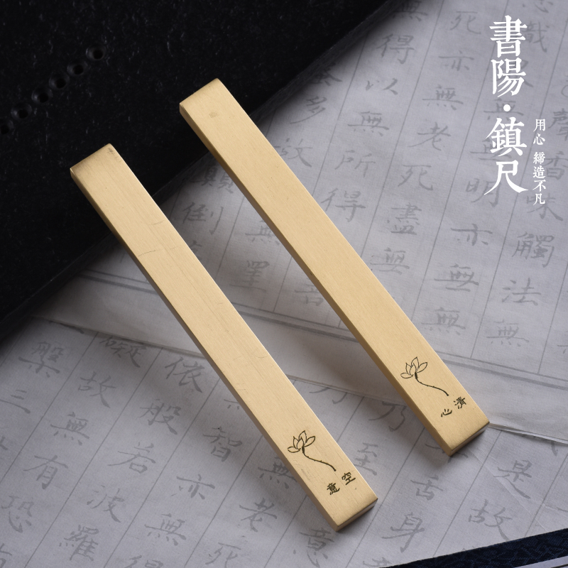 仿古文房四宝压宣纸金属纯铜镇纸学生实心黄铜书法压条镇尺小摆件