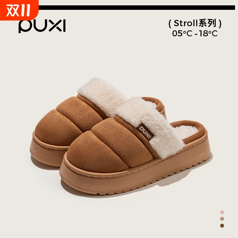朴西软云棉拖鞋女士秋冬季情侣加绒加厚保暖室内居家用软底拖鞋男