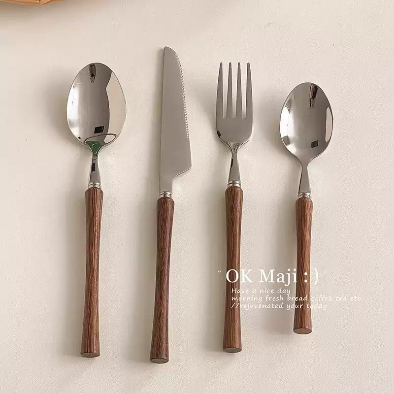 西餐刀叉套装家用餐具304不锈钢木柄法式高级切牛排刀叉勺三件套