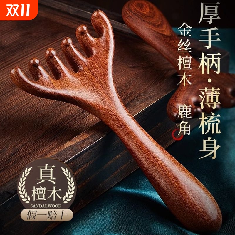 鹿角头部按摩经络梳子养生头疗工具天然檀木头皮刮痧疏通神器六爪
