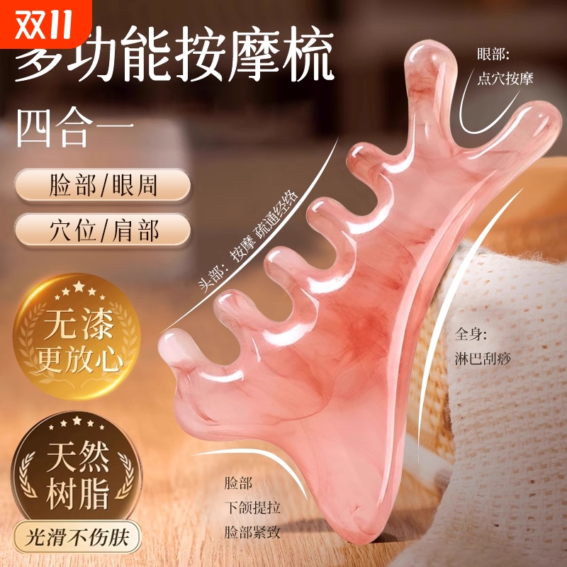 四合一多功能按摩梳头皮经络梳树脂头部头疗脱发脸部提拉刮痧神器