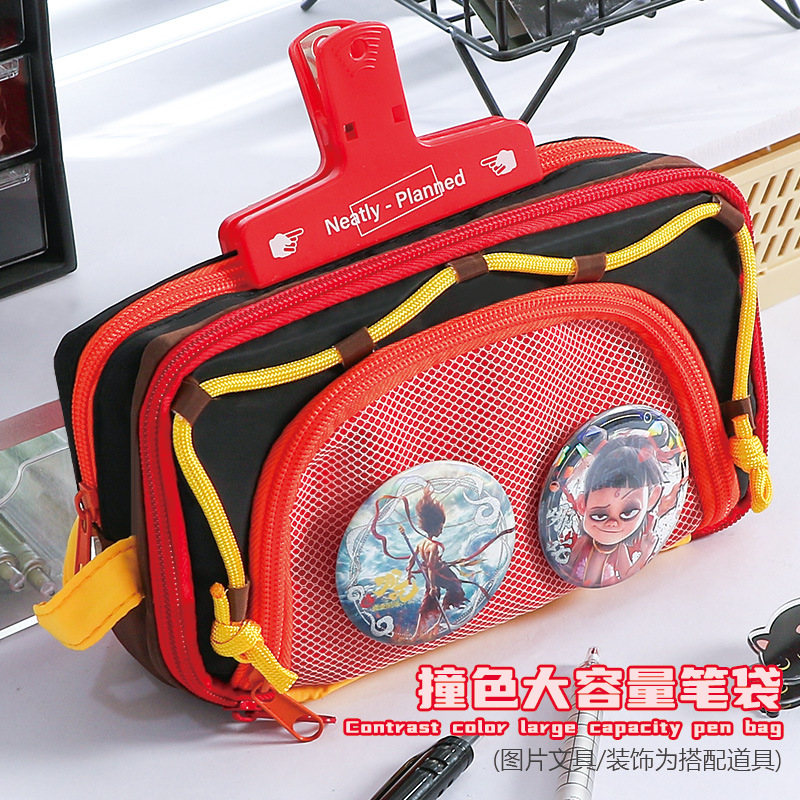 简约多功能撞色大容量笔袋手提高颜值吧唧痛包文具收纳袋文具袋