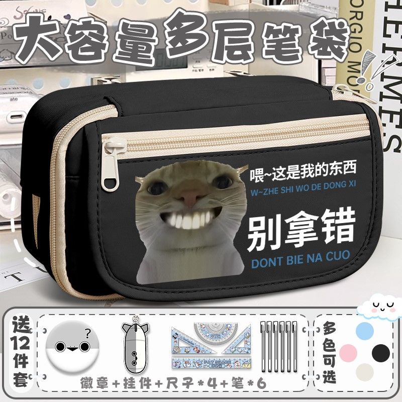 三角洲歪嘴小猫吧唧痛袋创意个性小学生文具袋多层收纳透明笔袋