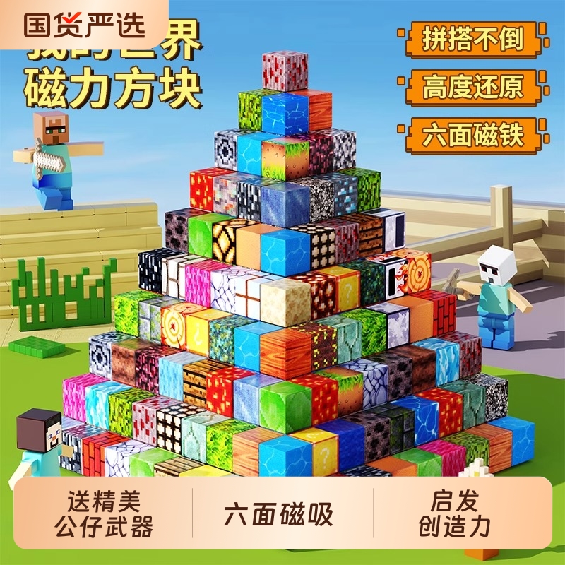 正版磁力方块积木儿童我的世界全套益智拼装磁吸铁小玩具男孩拼图