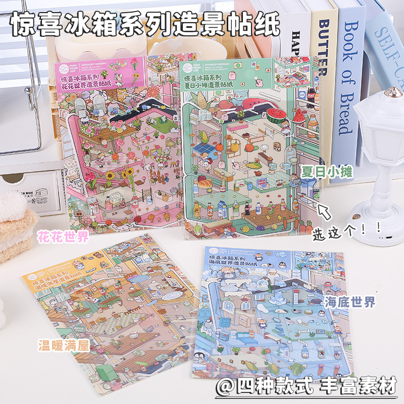 限定卡通可爱少女心学生惊喜冰箱系列3D造景贴纸学生解压diy贴画