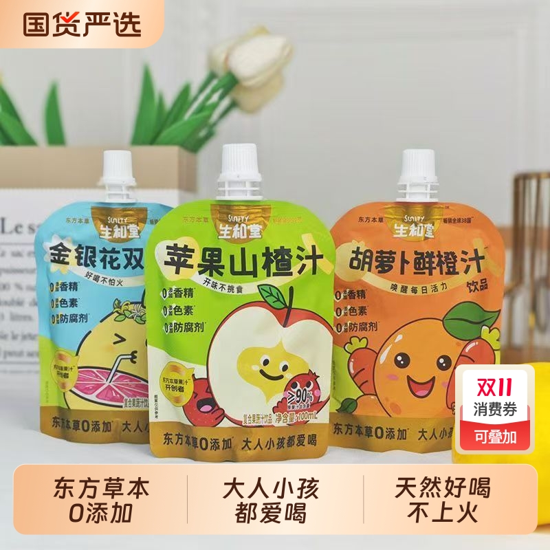生和堂金银花双柚汁100ml酸甜解馋礼盒苹果山楂汁
