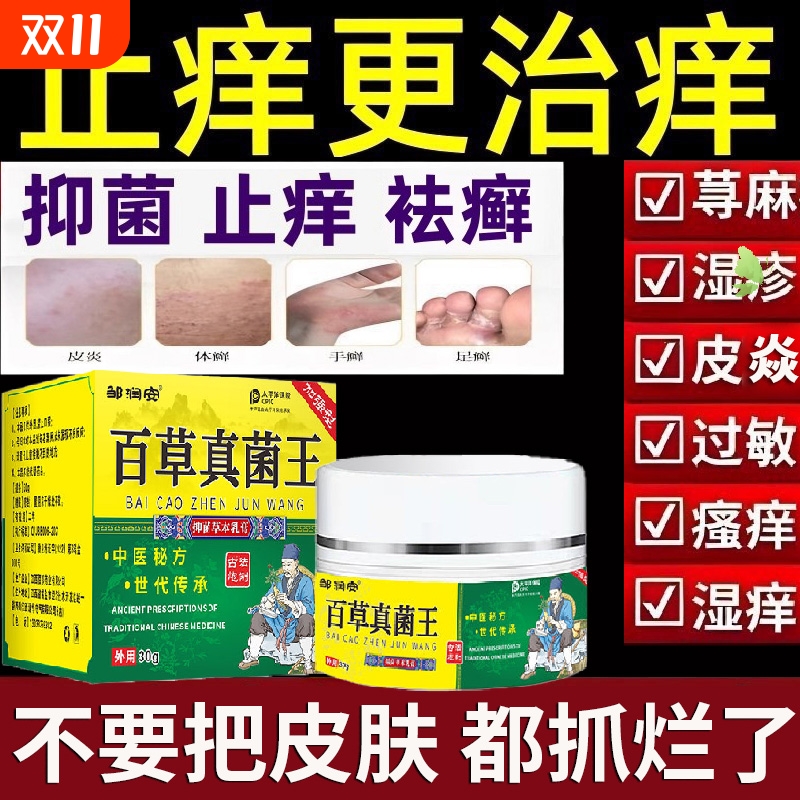 百草真菌王皮肤瘙痒气脚蚊虫叮咬牛皮藓药大腿内侧私处痒手足脱皮