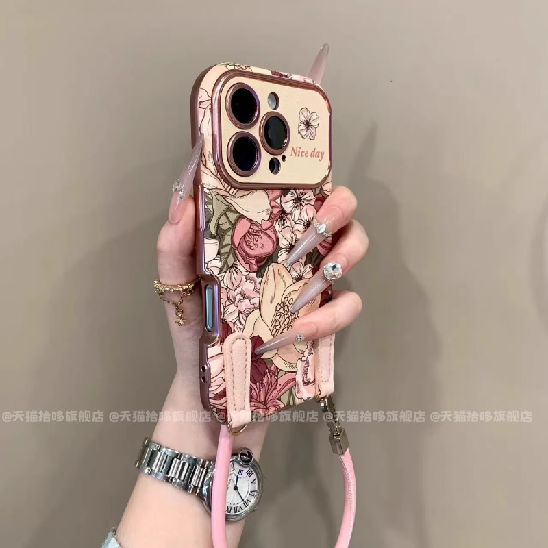 韩系早秋焦糖色斜挎皮挂绳手机壳