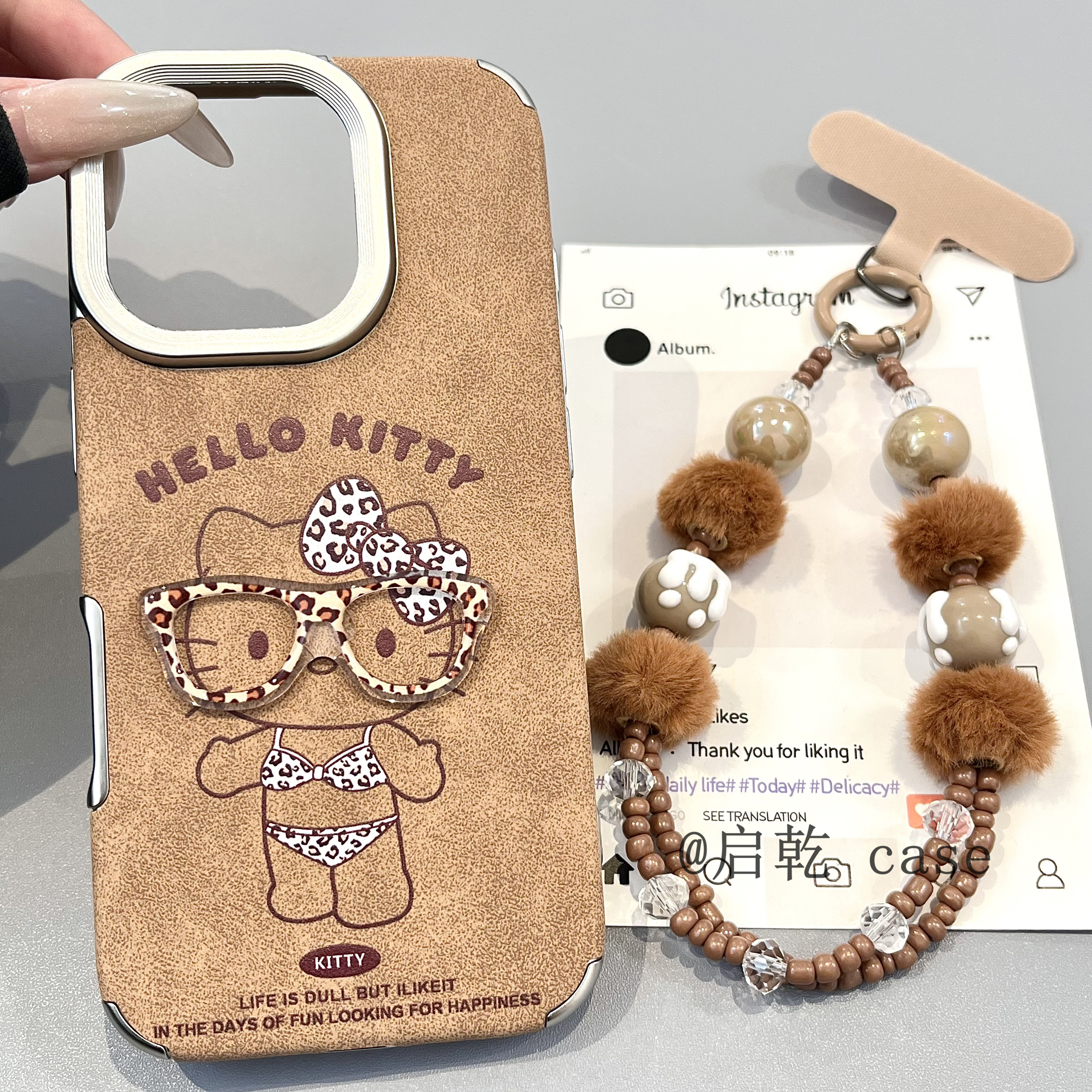 复古KT猫苹果16ProMax手机壳棕色波点iPhone15Pr