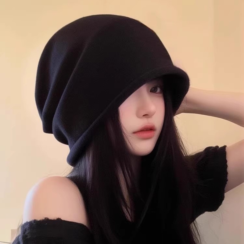虞书欣同款帽子女秋冬季百搭大头围黑色卷边堆堆帽显脸小包头冷帽