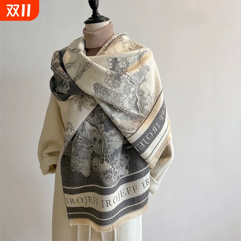秋冬季新款双面围巾披肩女高级感两用仿羊绒加厚保暖围脖大气格子