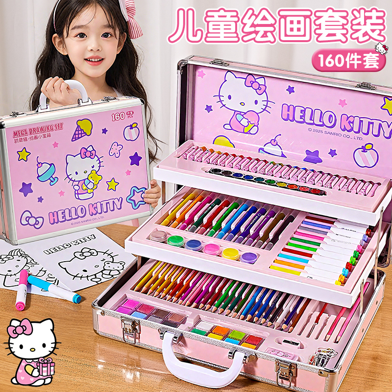 儿童208画笔绘画套装 水彩笔油画棒文具带画架板蜡笔学习美术用品