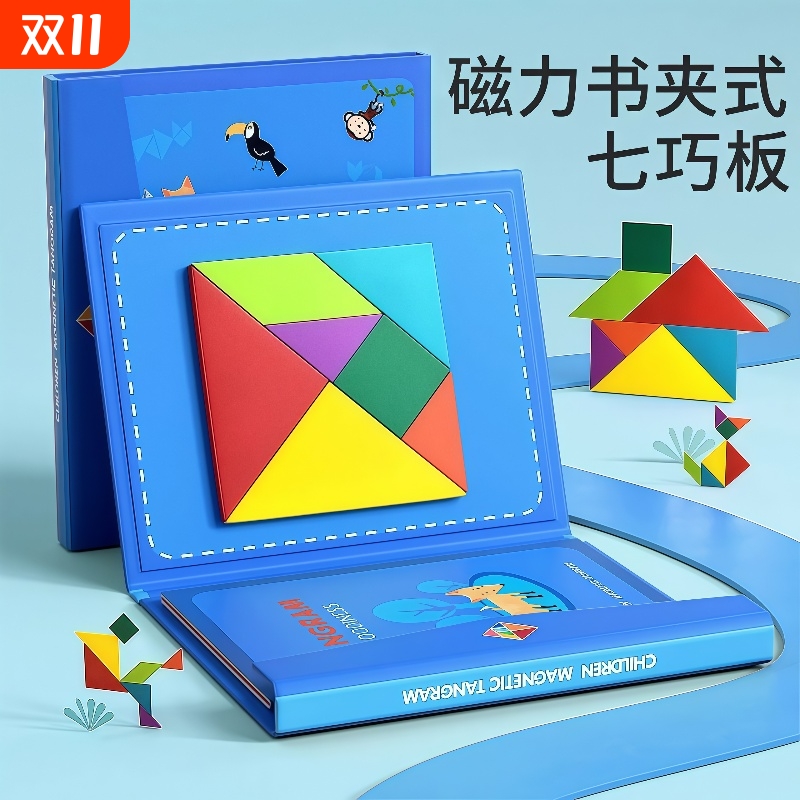 磁性七巧板智力拼图小学生专用一年级教具积木质儿童益智玩具磁吸